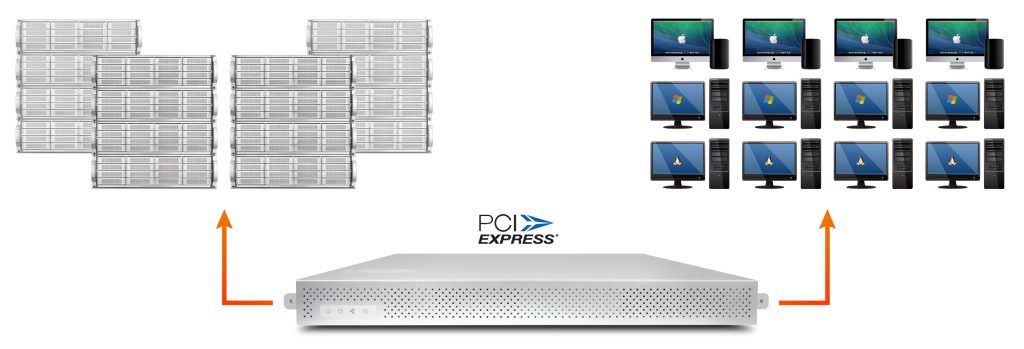 The SW16-G3 is Accusys’ third generation PCIe switch. The newest addition to the world’s first and only PCIe SAN switch product line features PCIe 3.0 technology and includes 16 ports (12 client ports, 4 storage ports) enabling optimized scalability and large group collaborative workflows. With total performance reaching 10,000 MB/s and a storage capacity of up to 3,584 TB, the SW16-G3 is an essential for large workgroups in the rich media industry.