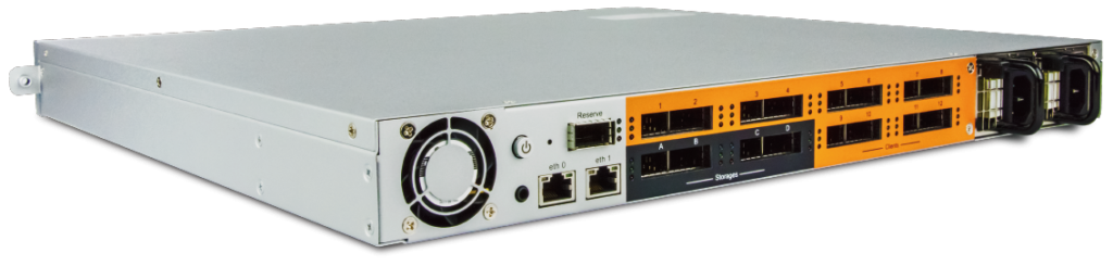 With four storage ports allocated for ExaSAN storage systems, the SW16-G3 enables simple scalability. By contacting four A16S3-PS each with three 16-bay JBOD units, users can reach a storage capacity of 3,584 TB (using 14TB HDD).