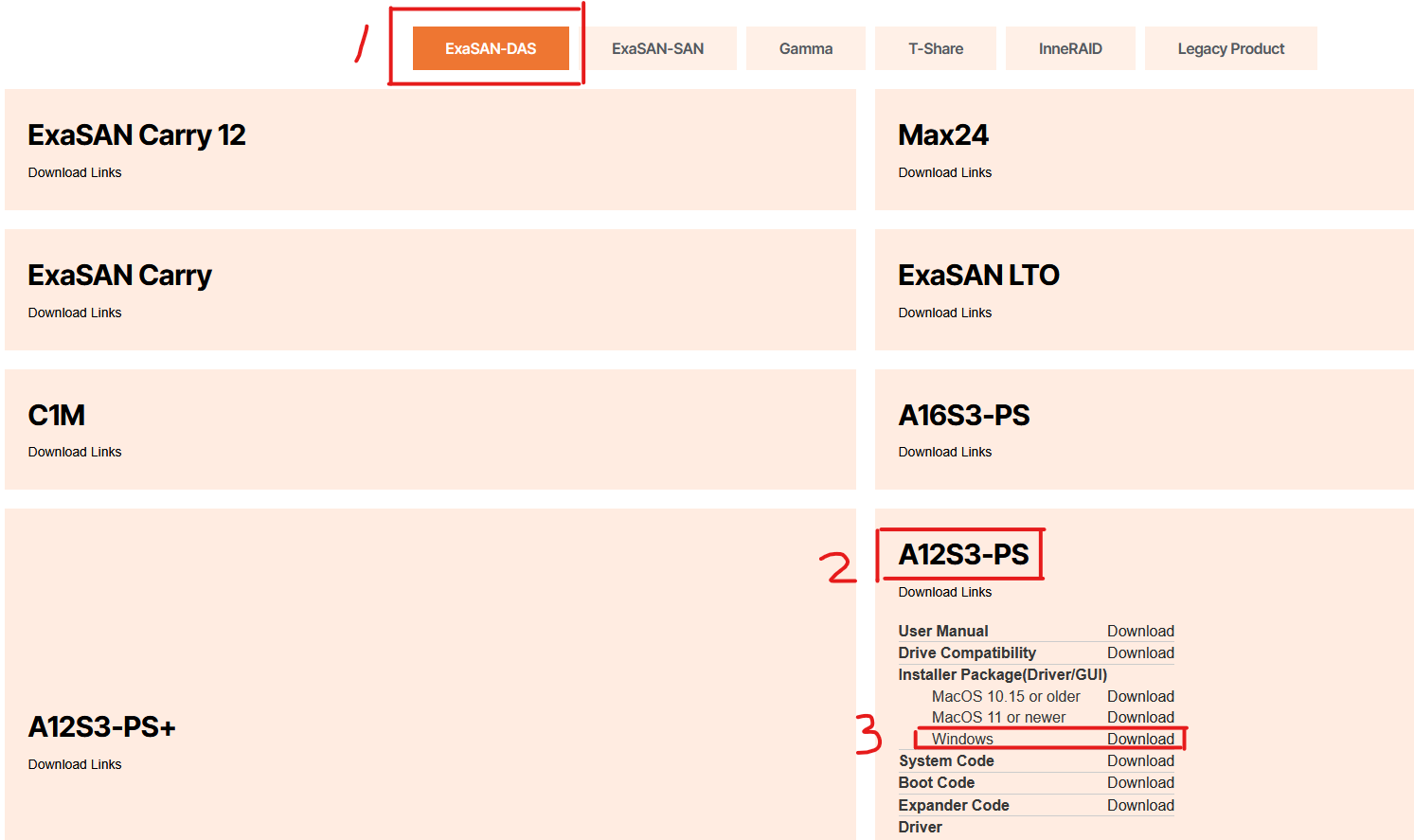 以 PICe 產品 A12S3-PS 為例,下載路徑如下:- 選擇產品系列 >